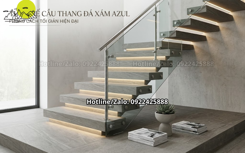Với độ dày 15mm – 20mm tiêu chuẩn, dòng đá này là lựa chọn tối ưu để làm Đá ốp cầu thang. Bề mặt nhám mờ tự nhiên của đá cung cấp độ ma sát tốt, chống trơn trượt hiệu quả, đảm bảo an toàn tuyệt đối cho người sử dụng trong quá trình di chuyển lên xuống hàng ngày, đồng thời tạo nên dải lụa xanh xám nối liền các tầng không gian.