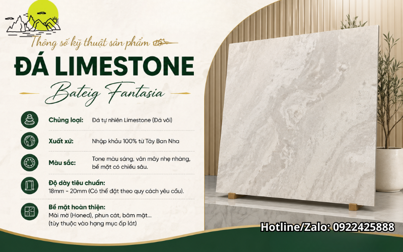 Thông số kỹ thuật sản phẩm Đá Limestone Bateig Fantasia Cao Cấp Tây Ban Nha